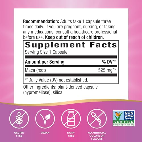 Nature’s Way Maca Root, Traditional Libido Support*, 525 mg per Serving, Non-GMO Project Verified, 100 Vegan Capsules (Packaging May Vary)