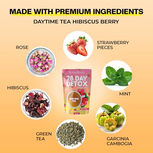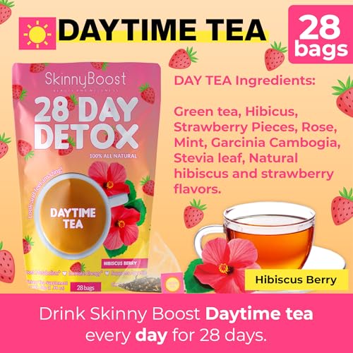 SkinnyBoost 28 Day Detox Daytime Tea -HIBISCUS BERRY (28 Tea Bags) Supports Metabolism Boost, Detox, All Natural, Non GMO, Vegan, Keto Friendly