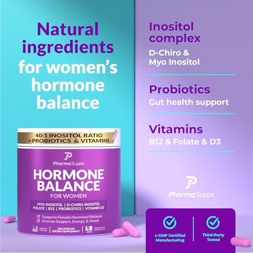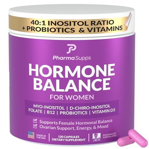 Hormone Balance for Women, Ovarian Support, Fertility, Menstrual Cycle, PCOS | Myo-Inositol & D-Chiro Inositol Supplement 40:1 Ratio w/Folic Acid for Hormonal Balance, B12 & Probiotics – 120 Count