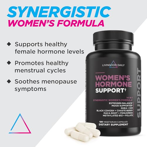 Livingood Daily Women’s Hormone Support – Better Mood, Hormonal Balance, PMS Relief & Menopause Supplements – Estrogen Supplement for Women w/Fenugreek Black Cohosh, Chasteberry & DIM – 120 Capsules
