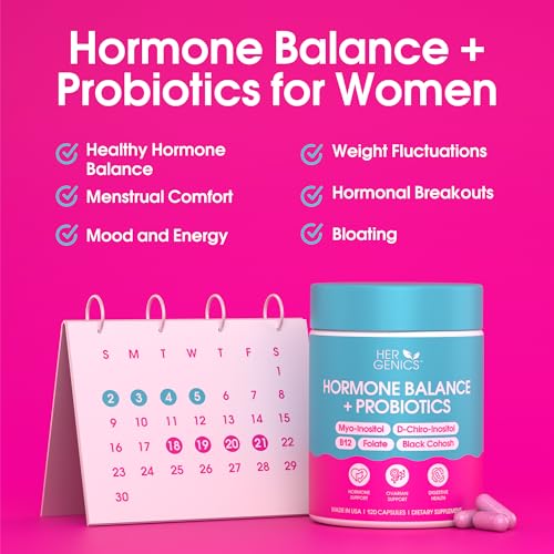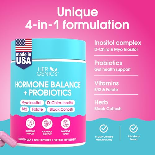 Natural Hormone Balance for Women, PCOS Supplements w/ Probiotics – Myo-Inositol & D-Chiro Inositol & Black Cohosh w/ Folate & B12 – PCOS Supplements for Hormone Balance, Female Vitamins 120 Capsules