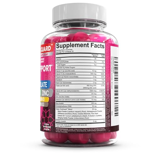 Ovarian Support gummies: All in one support gummies with myo inositol supplement, biotin gummies for hair skin and nails, folate 1000 mcg, selenium 200mcg capsules, zinc gummies adult, maca root gummies, and stinging nettle leaf. Flax seed oil provides omega 3 supplement that aids with hormone support and overall women health. Simplify your wellness routine with Ova Guard gummies where vitamins and supplements are carefully selected to bring hormone balance for women.