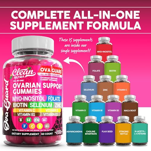 Ovarian Health Support | Myo-Inositol & D-Chiro Inositol Gummies | Folate Selenium Zinc Vitamin C D B1 B3 Maca Root Ashwagandha Choline Bitartrate Flax Seed Stinging Nettle N Acetyl Cysteine Clean