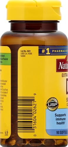 Nature Made Extra Strength Vitamin D3 5000 IU (125 mcg), Dietary Supplement for Bone, Teeth, Muscle and Immune Health Support, 90 Softgels, 90 Day Supply