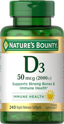 Nature’s Bounty Vitamin D3, Immune and Bone Support, Vitamin Supplement, 2000IU, 240 Rapid Release Softgels