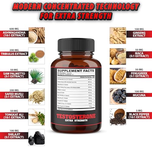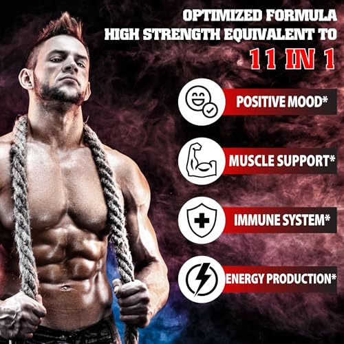 Testosterone Supplement for Men with Ashwagandha, Tribulus, Ginseng & More – 11 Herbs – Strength Support – 60 Vegan Capsules 1 Month Supply