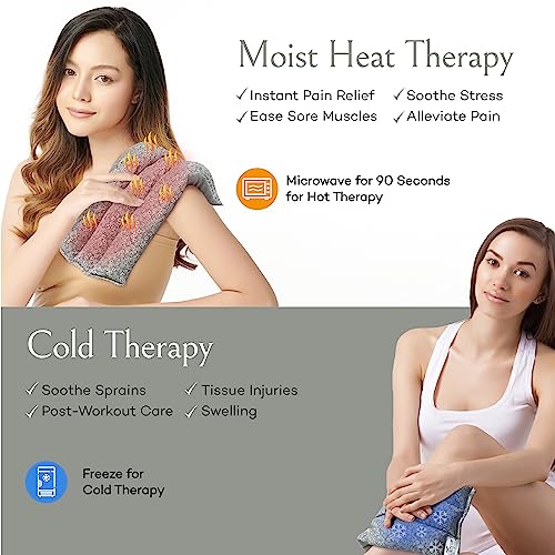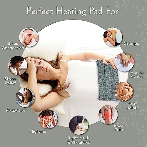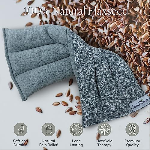 SacksyThyme Microwave Heating Pad for Back, Neck, Menstrual Cramps, Shoulders, Leg Pain Relief – Hot Moist Microwavable Therapy Pack – Gray Unscented Flaxseed Heat Pad Made in USA