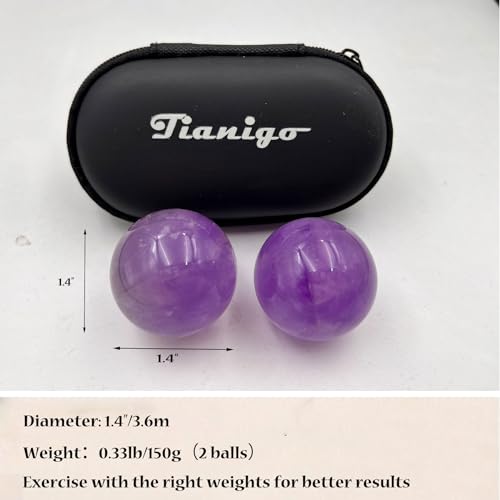 Baoding Balls 1.4”inch Amethyst Crystal Chinese Healthy Massage Balls for Hands Therapy Stress Relief Hand Exercise Balls Purple Quartz Healing Stress Balls No Chime