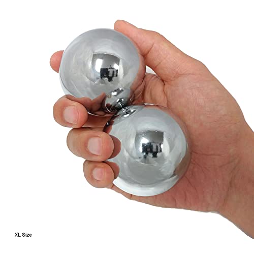 Chrome Baoding Balls with Bamboo Stand. Chiming Chinese Health Balls for Hand Therapy, Exercise, and Stress Relief (XL 2.3 Inch)