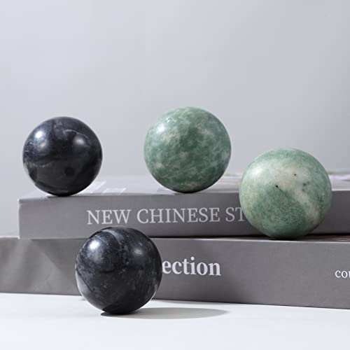 Healifty Baoding Balls Pack of 4-1.4 inch Chinese Balls for Hand, No Chime Chinese Health Exercise Massage Balls (Green,Black)
