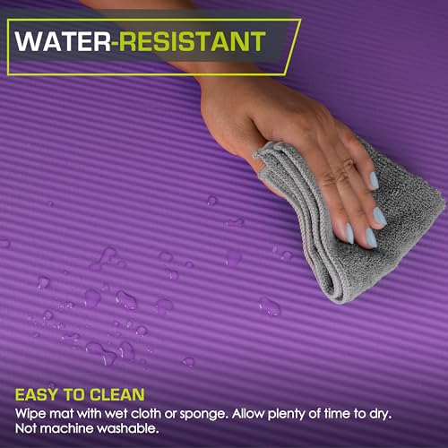 “Enjoy your yoga or Pilates practice without having to bunch up towels to put under your knees or back. Get all of the comfort and cushion you need from the ProsourceFit Extra Thick Yoga and Pilates Mat. Choose from ½-inch (13mm) or 1-inch (25mm) thick foam for the protection you need for floor exercises. The ½-inch creates a barrier between you and hard floors so you can do camel pose, boat pose, the Pilates 100, or cat cow without discomfort. Have super sensitive joints or recovering from a recent injury? Opt for the 1-inch to get superior comfort so working out doesn’t have to be painful. At almost 6-feet long, this mat suits most anyone, even tall users. Ribbed NBR foam provides a non-skid mat surface for fitness and exercise of various types and it is naturally moisture-resistant. It’s easy to clean and roll up after working out and it comes with a free mat sling to make it easy to carry to and from your yoga or Pilates workout session! Choose from 8 color options for the ½-inch mat comes and 3 colors for the 1-inch mat. Care Instructions: Wipe mat with wet cloth or sponge. Allow plenty of time to dry. Not machine washable”