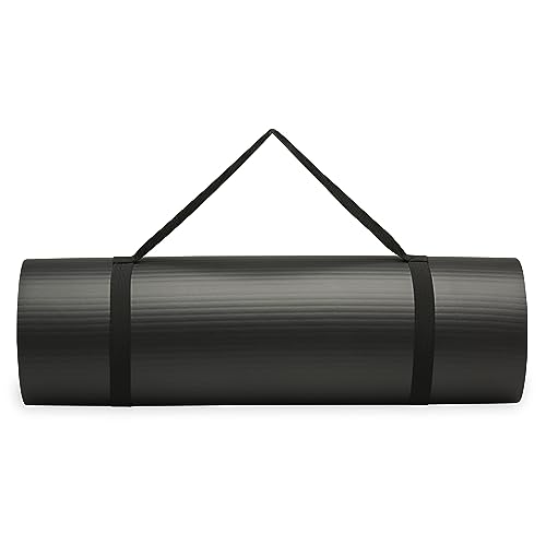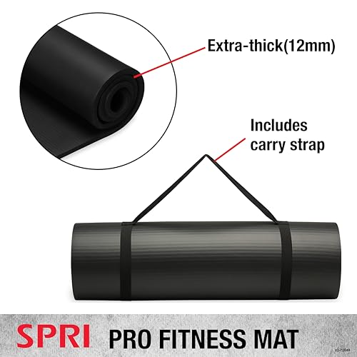 SPRI 12mm Pro Fitness Matt – Thick Exercise Mat for Floor Workouts, Sit-Ups, Push-Ups, Stretching, Toning, and General Fitness – Non-Slip Texture, Cushioned, Portable Rolling Mat with Carrying Strap