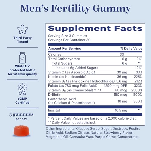 Vitamins for Men: It takes two to make a baby, and we recognize that men’s fertility health has been often overlooked. Take three gummies daily as you prepare for conception. Support sperm health, motility, drive, energy levels and performance, reproductive wellness, and hormone balance for men.