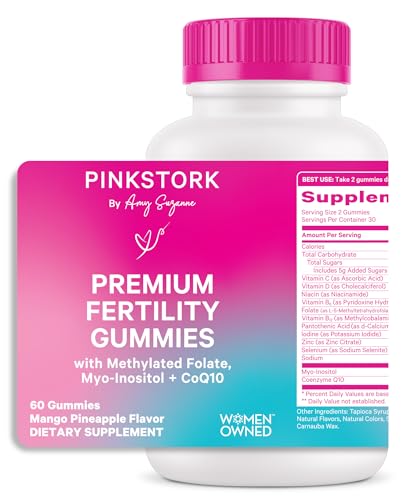 Pink Stork Premium Fertility Gummies for Women – Prenatal Conception Supplements for Her with Inositol, CoQ10, Folate and Vitamins to Support Hormone Balance, Ovulation + Menstrual Cycle, 60 Gummies