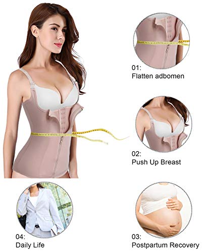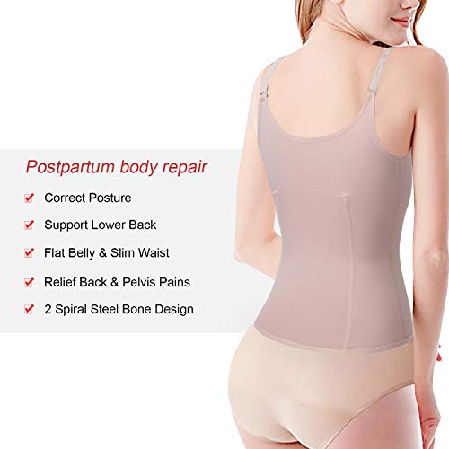 BACK SUPPORT AND Shrink Down Postpartum Belly: It’s designed with double control and adjustable straps. 3 rows of Hooks and Double Control to Adjust the Suitable Size that You Want, and 2 Spiral Steel Boned provide a nice support on your back. Helps whom get abdomical surgery to reduce back pain and helps the recovery process and return uterus to its original size. It helps get your baggy skin back in place, flatten your stomach to normal after baby.