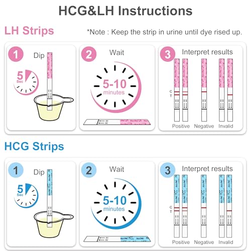 【Quick Response & Easy to Use】Placing your strip into the urine and removing after 5 seconds. Allow the strip to lie flat and then read results in 5 minutes.Ovulation tests — a test line as dark or darker than the control line indicates a positive result. Pregnancy tests — two lines means pregnant and one line means not pregnant.