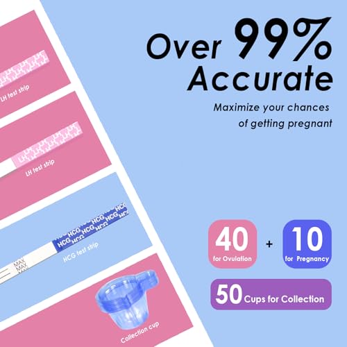 Ovulation and Pregnancy Test Strips Combo: 40 Ovulation Tests&10 Pregnancy Tests,Fertility Tests for Women(40LH+10HCG+50 Collection Cups)