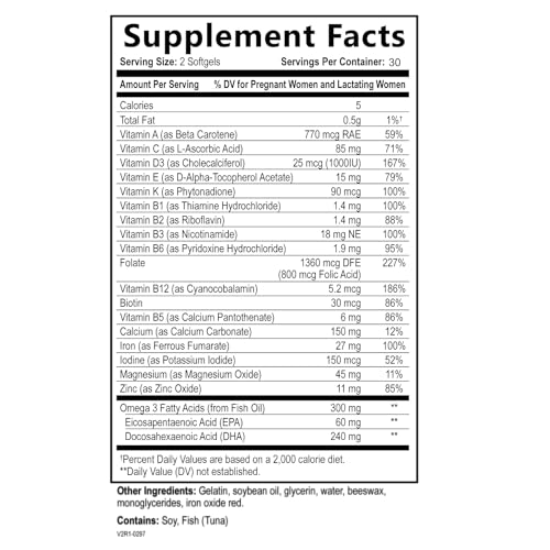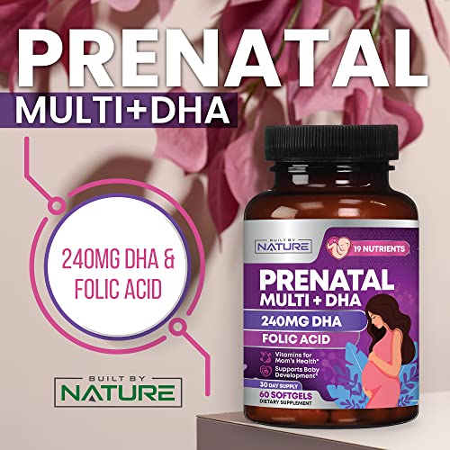 Prenatal Vitamins for Women – Multivitamin with DHA, Folic Acid, Vitamin C, B12, Iron & Omega-3 – Before, During & Post Pregnancy Supplement for Healthy Growth & Brain Development – 60 Softgels