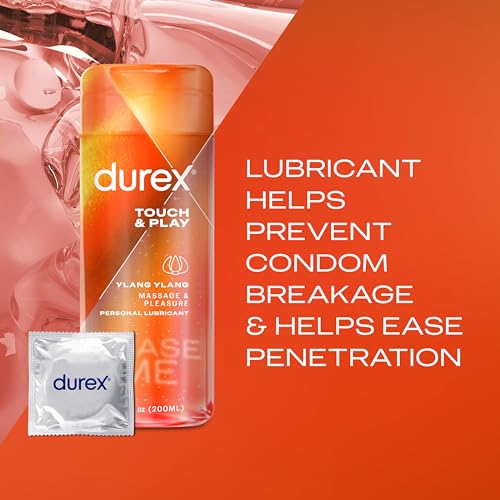 Durex Sensual Massage & Play 2 in 1, Massage Gel and Personal Lubricant, Intimate Seductive Lube with Ylang Ylang extract, Water-based, 6.76 oz. (Packaging May Vary)