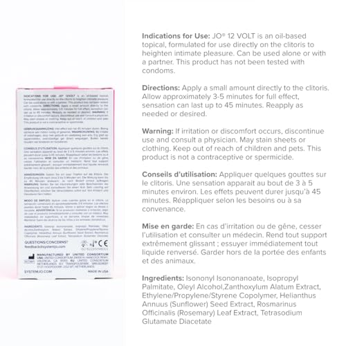 JO 12 Volt Clitoral Serum, Stimulate Intimate Moments for Women and Couples, 34 FL Oz