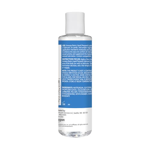 Amazon Basics Liquid Personal Lubricant is a water based lubricant that moisturizes, lubricates and enhances the ease and comfort of intimate sexual activity. This easy to clean and non staining formula delivers a natural feel and is suitable for all skin types. Amazon Basics Liquid is compatible with silicone and rubber toys. It is safe to use with natural rubber latex, polyurethane, and polyisoprene condoms. This formula is made in the USA and is FDA cleared.