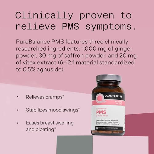PUREBALNCE PMS WORKS IN 3 PHASES – Your period cramps will subside thanks to ginger, mood swings will stabilize thanks to saffron, and lastly other PMS sympto such as temporary breast swelling, bloating, occasional headache, and irritabili will diminish thanks to vitex