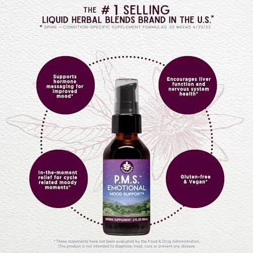 ORGANIC & WILD-HARVESTED INGREDIENTS: Our staff of highly-trained certified herbalists use only quality-tested, non-GMO ingredients to produce our signature small-batch formulations that support our bodies in the way nature intended. Made with Vitex berry (aka Chasteberry), Scullcap aerials, Motherwort aerials, Passionflower aerials, Blue Vervain aerials, Burdock root & St John’s Wort aerials. PMS Emotional irritability relief for women and healing solutions PMS relief is gluten-free & vegan.